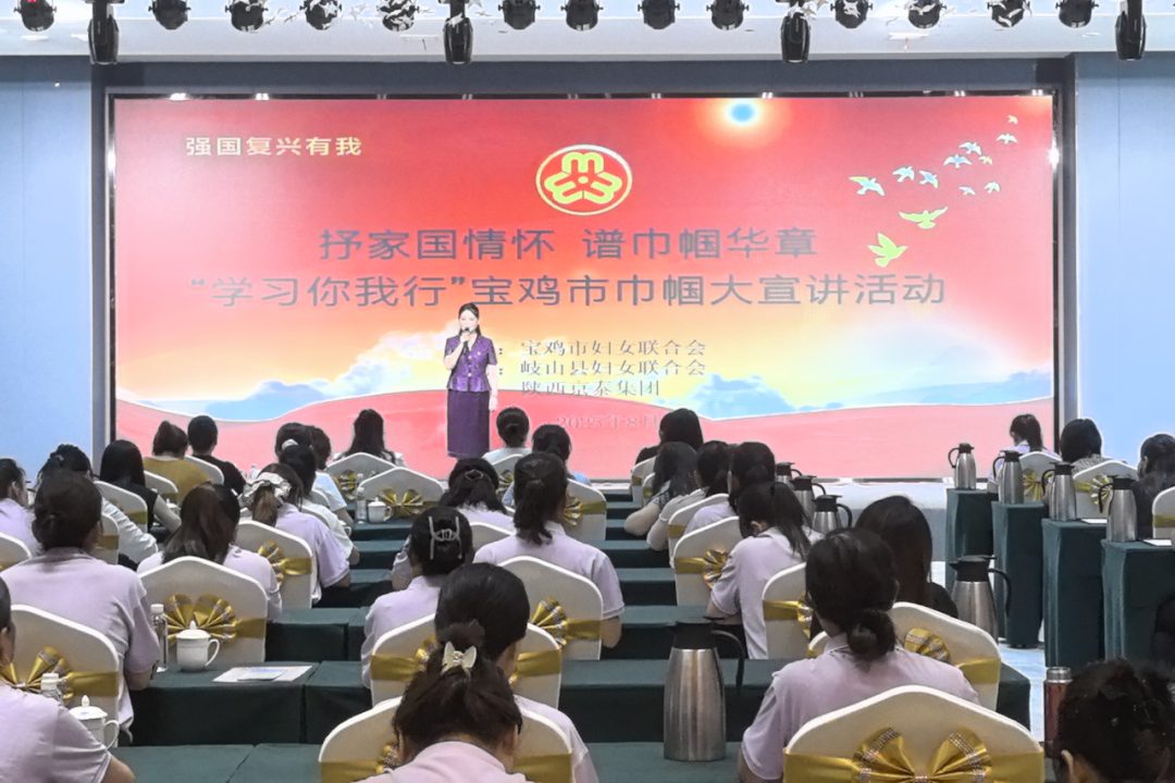 为深入贯彻党的二十大及二十届二中、三中全会精神,进一步加强习近平总书记关于注重家庭家教家风建设重要论述的学习宣传,8月20日,由宝鸡市妇联主办,岐山县妇联、陕西京泰集团协办的“强国复兴有我--抒家国情怀,谱巾帼华章”“学习你我行”宝鸡市巾帼大宣讲活动在岐山举办。岐山县、镇、村妇联干部,县“三新”领域妇联代表及京泰集团员工100余人参加了宣讲活动。