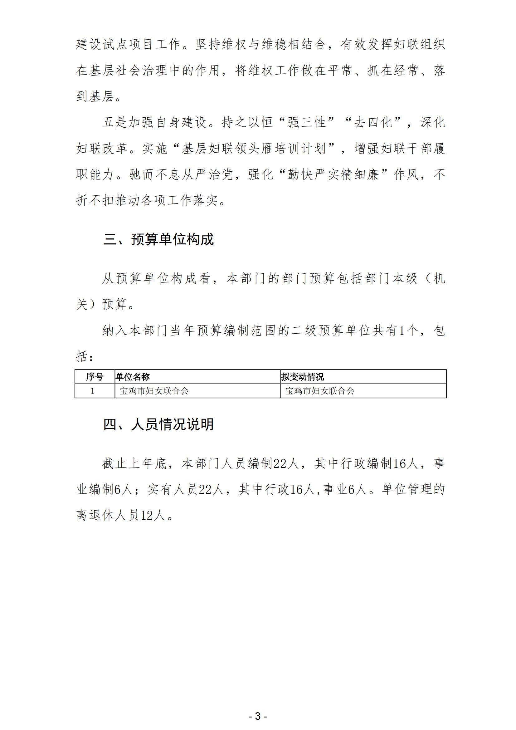 宝鸡市妇女联合会2022年部门综合预算