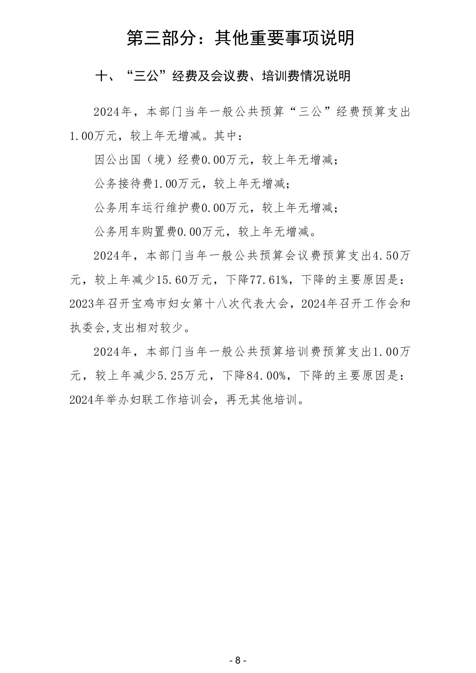 宝鸡市妇女联合会2024年部门预算公开说明