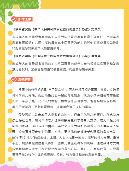 2025年5月1日,《陕西省实施く中华人民共和国家庭教育促进法〉办法》(以下简称《办法》)正式施行。为了帮助家长更好地学习理解《办法》,有效开展家庭教育指导服务,陕西省妇联推出《陕西省家庭教育漫画普法宣传册》,对《办法》中家长需承担的责任进行重点解读,用充满童趣、浅显易懂的家庭漫画,把家庭教育职责形象化、故事化,让广大家长看得懂、学得会、用得上。